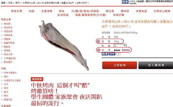 由於肉類我比較熟悉,所以看到賣全羊之後有點感到小驚喜,如果多幾樣特規品跟仔細的介紹,或許這個規劃不夠透徹的購物網還有點機會