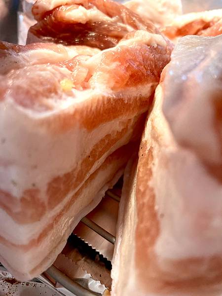 對五花肉一直不是很熟悉,好市多買了幾次分切才明白常見控肉飯的片切也是五花肉;接著好奇煙燻的過程,究竟煙燻過程豬肉發生了什麼事?還有常見的鹹豬肉,鹽份對五花油脂層造成什麼影響?