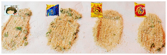 - 在調味料上來說,張君雅偏辣,科學麵與統一脆麵居中,王子麵偏鹹,味精結晶顆粒明顯